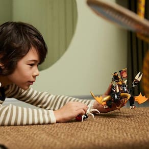 Crianças maiores de 7 anos vão se emocionar encenando batalhas cativantes com este conjunto lego ninjago dragão de terra evo do cole (71782). durante a ação, as crianças podem aprimorar o dragão posicionável para torná-lo ainda maior e mais poderoso adicionando asas douradas, chifres e uma cauda dourada. brinquedos ninja legais para crianças este conjunto inclui 2minifiguras: o cole armado com uma katana dourada e um escorpião ossudo com uma foice e um pack de armas do guerreiro ossudo. o escorpião ossudo também pode entrar na batalha montado em sua criatura escorpião de 6 pernas. por superar o desafio, as crianças recebem uma recompensa na forma de uma bandeira de força colecionável. uma experiência digital divertida para construtores de lego deixe o aplicativo lego builder guiar você e seu filho em uma aventura de construção fácil e intuitiva. amplie e gire modelos em 3d, salve conjuntos e acompanhe seu progresso. Ean: 673419371971