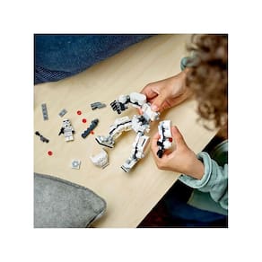 Apresente às crianças pequenas o emocionante universo LEGO® Star Wars™ construído com peças com este Stormtrooper Mech (75370) para brincar e exibir. O fato de robô ajustável tem um cockpit que se abre para a minifigura LEGO Stormtrooper, um clipe para o seu detonador e mãos que agarram para segurar o blaster disparador de espigas. LEGO Builder Um presente fabuloso para crianças a partir dos 6 anos, este robô LEGO Star Wars foi criado para ser fácil de construir, para que a ação comece rapidamente. Melhore a experiência criativa com a aplicação LEGO Builder, que apresenta instruções de construção intuitivas com zoom 3D e ferramentas de visualização rotativas, e permite-lhes acompanhar o seu progresso e guardar sets. Brinquedo de construção colecionável LEGO Star Wars Este kit de construção de modelo de robô faz parte de uma série de robôs LEGO Star Wars, que também inclui os sets 75368 Darth Vader Mech e 75369 Boba Fett Mech (vendidos em separado)!