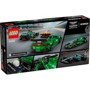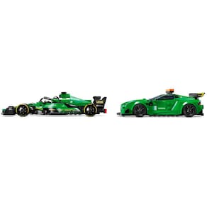 O Carro de Segurança Aston Martin inclui muitos detalhes de design autênticos, como as luzes montadas no teto, um adesivo de botão de controle das luzes no cockpit e luzes traseiras. Já o carro de corrida AMR23 possui um halo de segurança, aerofólio e logotipos dos patrocinadores. Cada carro vem com uma minifigura de piloto para as crianças colocarem atrás do volante.