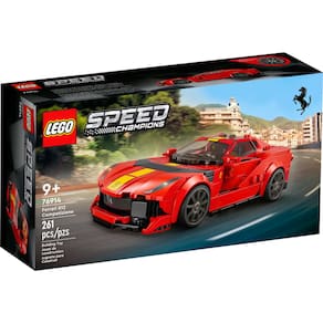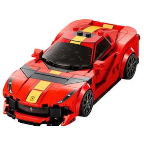 Este brinquedo de um carro vermelho da Ferrari inclui orgulhosamente muitos detalhes autênticos: a faixa amarela que atravessa o carro, a lâmina preta no capô, o aerofólio traseiro elevado, geradores de vórtice destacados, faróis distintos e escapamento. O conjunto também inclui uma minifigura de um piloto de corrida para colocar atrás do volante e encenar ação eletrizante.