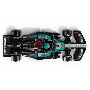 Medidas ? Um conjunto de carro de 267 peças com um carro de corrida da equipe Mercedes-AMG PETRONAS F1 que mede mais de 1 pol. (2 cm) de altura, 8 pol. (20 cm) de comprimento e 3 pol. (8 cm) de largura
