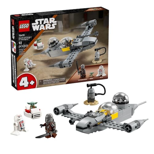 Aprenda a construir com peças LEGO e brinque com as histórias de fantasia da Temporada 3 de Star Wars : The Mandalorian com o conjunto de brinquedos para construir N-1 Starfighter de Mando e Grogu (75410) para crianças em idade pré-escolar. Um presente divertido de Star Wars ™ para meninos, meninas e fãs a partir de 4 anos, o N-1 Starfighter tem uma base de peças iniciais para dar às crianças uma vantagem inicial na construção, e vem com um posto de abastecimento para construir.