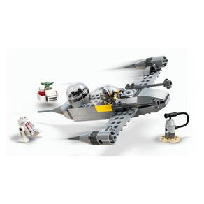 Este kit de construção de modelo N-1 Starfighter inclui 3 personagens LEGO Star Wars : O Mandaloriano com um sabre negro e um elemento acessório jetpack, Grogu com um carrinho de bebê flutuante e R5-D4. Coloque o Mandaloriano no cockpit de abertura do N-1 Starfighter e coloque Grogu no espaço para passageiros na parte traseira.