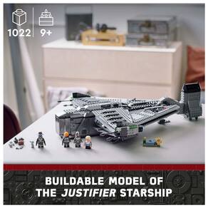 Children aged 9 and up can recreate epic Star Wars The Bad Batch stories with this superb LEGO brick built model of bounty hunter Cad Banes starship, The Justifier 75323. Fans will love the realistic features, such as the rear engine that folds up and down for flight and landing, a detailed cockpit, and a jail cell to imprison Omega. There are 4 LEGO Star Wars minifigures of Cad Bane, Omega, Fennec Shand and Hunter with cool accessories, plus a Todo 360 LEGO droid figure to inspire imaginative play. A fabulous gift idea for trendsetting kids, this construction toy comes with step by step instructions so even Star Wars fans who are new to LEGO sets can build confidently. The LEGO Group has been recreating iconic starships, vehicles, locations and characters from the Star Wars universe for over 2 decades, and there is a large assortment of sets to delight fans of all ages.Buildable LEGO Star Wars model of The Justifier 75323 Fans can role play Star Wars The Bad Batch Season 2 scenes with this authentically detailed, brick built starship and popular characters 4 LEGO minifigures and a droid Cad Bane, Omega Fennec Shand and Hunter, plus a Todo 360 LEGO droid figure Flight and landing modes Fold up the rear engine of bounty hunter Cad Banes starship for flight mode and fold down to automatically deploy the landing gear Many play inspiring features A detailed easy access cockpit, 2 thermal elements, a laser jail cell for Omega Fun gift idea for ages 9 and up Give this 1,022 piece buildable play set as a birthday present, holiday gift or surprise treat to trendsetting kids who are into Star Wars The Bad Batch Marca: Não Informado