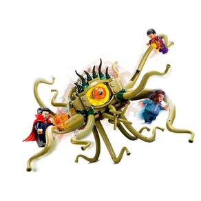 personagens populares - inclui 3 minifiguras: doctor strange com uma capa removível wong e america chavez; e um monstro para construir com tentáculos articulados