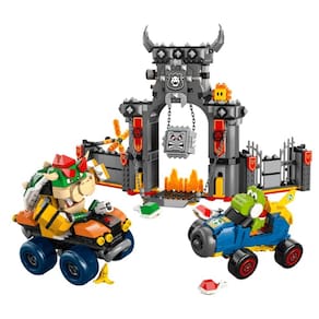 Prepare-se para correr no Mario Kart Castelo do Bowser com este conjunto de corrida de veículos LEGO Super Mario para crianças (72039). Um brilhante brinquedo de presente de personagem Nintendo para meninos, meninas e jogadores a partir de 9 anos, o conjunto inclui o Castelo do Bowser, com espaço para Bowser ficar em pé, paredes dobráveis, uma Barra de Fogo giratória e outras funções divertidas. Dirija, derrape e lance projéteis com Bowser no quadriciclo padrão e Yoshi no kart Mach 8, destrua as paredes do castelo, desvie do Thwomp em queda livre e derrube a Bolha de Lava.