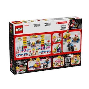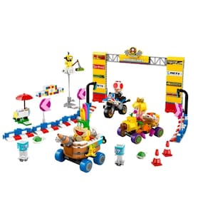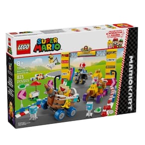– O conjunto inclui veículos Wild Wiggler, Landship e Standard Bike que podem lançar conchas, o vagão de doces do Toad, um portão de largada, a nuvem do Lakitu e um pódio dos vencedores Jogo interativo – Coloque LEGO® Mario™, LEGO® Luigi™ ou LEGO® Peach™ (figuras não incluídas) nos veículos de brinquedo, nas Action Tags de outras construções ou nas 2 caixas de itens para reações digitais Presente LEGO® Super Mario™ para crianças – Dê este conjunto para meninos, meninas e jogadores Nintendo® com 8 anos ou mais; um dos conjuntos 71439, 71440 ou 71441 (vendido separadamente) é necessário para jogo interativo Possibilidades extras de jogo – Explore toda a ampla variedade de conjuntos LEGO® Super Mario™: Mario Kart™ (vendidos separadamente) e descubra outros veículos e personagens de brinquedo Mario Kart para montar e competir Estimule a imaginação das crianças – os conjuntos de brinquedos LEGO® Super Mario™ são projetados para brincadeiras individuais ou sociais, oferecendo dramatização, coleta de moedas digitais e desafios divertidos por meio de expansão e reconstrução Medidas – O portão de partida neste conjunto de 823 peças mede mais de 7 pol. (18 cm) de altura, 12 pol. (33 cm) de largura e 1,5 pol. (4 cm) de profundidade