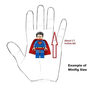 Este boneco LEGO é cuidadosamente moldado e impresso pela LEGO para se parecer com o personagem real mostrado. Tem menos de 2 polegadas de altura e é compatível com qualquer outro conjunto LEGO padrão. A figura vem na embalagem de papel alumínio de varejo, conforme mostrado.