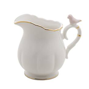 Leiteira Birds de Porcelana 230ml Branco, Dourado e Rosa Wolff