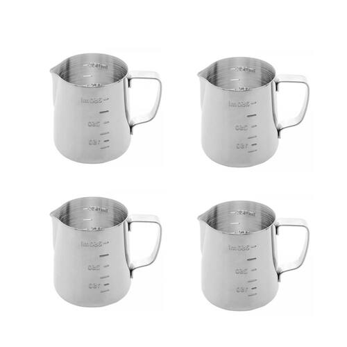 Contem: 4 Leiteiras Bule Volume Total: 350ml Medidas: 9 x 11 cm Material: Aço Inoxidavel