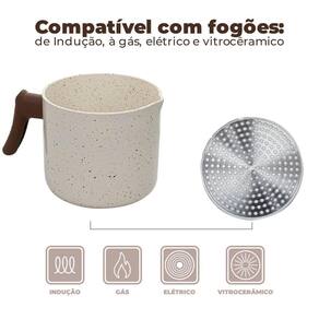 Características: Marca: Brinox Referência: 4774/351 Modelo: Ceramic Life Smart Plus Material do Fervedor: Alumínio Material do Cabo: Baquelite Siliconado Soft-Touch Cor: Vanilla e Marrom Quantidade: 1 peça
