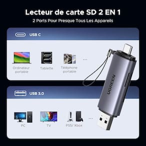 Leitor de cartão sd ugreen usb c e a 3.0 micro adaptador de alumínio 5gbps para sd tf uhs sdxc sdhc mmc compatível com/,/16/plus/pro/max,/15/macbook/air/m4/m2/,/galaxy,/tab,/s9,/a9,/s25 Leitor de cartões 2 em 1 o adaptador foi projetado com dois conectores, usb c e usb 3.0. O leitor de cartões permite a leitura de 2 cartões simultaneamente sd e micro sd em um pc ou celular/tablet. Evitando o incômodo de desconectar e reconectar. Suporta a função otg. Observação Certifique-se de que o tablet/smartphone seja compatível com a função otg antes da compra. Transferência ultra rápida o leitor de cartão sd oferece velocidades de transferência rápidas e estáveis. Por exemplo, quando com um cartão uhs-i, a velocidade pode chegar a 104 mb/s. dica: 5 gbps é a velocidade máxima teórica suportada pela interface usb, não a velocidade máxima de transferência de dados do produto. Acesso simultâneo a 2 cartões o adaptador de cartão sd e micro sd pode ler e gravar em 2 cartões simultaneamente para melhorar sua eficiência no trabalho. Suporta cartões sd, micro sd tf , uhs, sdxc, sdhc, micro sdxc, micro sdhc, rs-mmc e mmc de até 2 tb. dica: a conexão do cartão uhs-ii só atinge a velocidade do uhs-i. Design delicado o revestimento de alumínio deste leitor de cartão de memória proporciona melhor desempenho de dissipação de calor, além de ser mais robusto e resistente ao desgaste. O mecanismo de ejeção e travamento do leitor de cartão fixa o cartão micro sd no lugar para garantir uma conexão estável com o seu dispositivo. Transferência super rápida de 5 gbps a velocidade máxima de transmissão chega a 5 gbps, mais rápida que o usb 2.0. Em apenas 10 segundos, é possível transmitir um filme de 1 gb. Ideal para transferir imagens e vídeos em alta resolução de forma mais rápida e eficiente. Velocidade de leitura de até 170 mb/s. Design portátil o leitor de cartão possui um invólucro de alumínio para excelente dissipação de calor. A capa protetora protege ambas as interfaces contra poeira e sujeira. Um chaveiro anti-perda permite prendê-lo ao seu chaveiro ou bolsa com uma alça de cordão, facilitando o transporte. Fácil de usar plug & play, este adaptador usb sd pode ser inserido diretamente no seu dispositivo usb com usb a, nenhum driver é necessário para sistemas windows/11/10/8.1/8/7/vista/xp,/linux,/,/os,/ios,/e,/android. Compatibilidade universal o leitor de sd usb 3.0 e usb c 2 em 1 é compatível com//16//16/plus/,/16/pro/,/16/pro/max/série,/,/15,/macbook/pro/série/air,/série,/,/série,/galaxy,/tab,/série,/galaxy,/s25, etc. Este leitor de cartão é compatível com/o/,/16 Sim, este leitor de cartão usb c é compatível com//16//16/plus//16/pro//16/pro/max. Quais cartões são compatíveis com este leitor de cartão Este leitor de cartão é compatível com cartões sd/sdhc/sdxc/mini sd, micro sd tf /micro sdhc/micro sdxc. Suporta cartões com capacidade de até 2 tb. Este leitor de cartão pode ler e gravar dois cartões ao mesmo tempo Sim, este leitor de cartão pode ler e gravar dois cartões ao mesmo tempo. Preciso instalar um driver Plug and play, não requer instalação de driver. Velocidade de transferência de dados 5 gigabits por segundo Marca ugreen Cor cinza Modelo sd tf 2 em 1 usb tipo c 7,37 x 2,15 x 1,16 cm; 37g Homologação Anatel: 109062214103