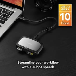 - Taxas de transferência USB de 10 Gbps (USB 3.2 Gen 2) de alta velocidade com USB Type-C