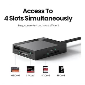 Leia e altere os 4 cartões simultaneamente: Ao contrário de outros adaptadores de de leitura única, o Ugreen Card Reader permite ler 4 cartões simultaneamente e mantém você longe do incômodo de desconectar e reconectar constantemente.