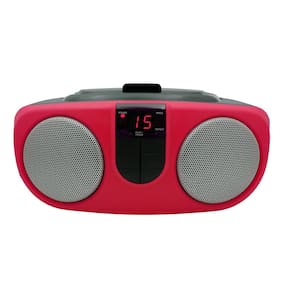 IMPORTANTE: Se for um produto elétrico, ele pode ser compatível com uma tomada de 110 volts. Se utilizado fora dos Estados Unidos, pode ser necessário um conversor de voltagem para garantir a operação adequada. Verifique se o produto que você está comprando é elétrico antes de considerar essas informações. Leitor de CD portátil PROSCAN ELITE com caixa de som de rádio AM/FM (vermelha)