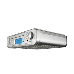 PROSCAN ELITE PKCR2713AMZ Leitor de CD Under Counter com Rádio-Relógio e Bluetooth, Prateado - CD embaixo do armário, rádio com Bluetooth. Alimentado por adaptador CA com bateria reserva - Alto-falantes embutidos para reproduzir sua música favorita via Bluetooth ou qualquer estação FM com sintonizador FM integrado - Tela LED para facilitar a leitura da hora ou da sua estação de rádio definida - Inclui: kit de montagem e controle remoto de função completa. Potência 2 x 1,2 L - Nenhum recurso AM disponível. A antena interna requer reposicionamento da unidade para melhor recepção