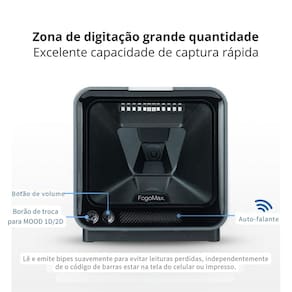 Alta Sensibilidade: Leitura rápida e precisa de códigos danificados, coloridos ou reflexivos. Zona de Digitalização Grande: Área quadrada para capturas rápidas em etiquetas ou telas. Tecnologia Avançada: Algoritmo otimizado, iluminação segura para os olhos e atualizações online. Plug and Play: Compatível com Windows, MacOS, Linux e Android, sem necessidade de drivers. Leitura Omnidirecional: Operação em modo mãos-livres para maior produtividade