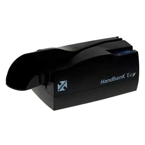 O HandbanK 10 USB é um leitor semi-automático (com motorização) para pagamento de contas pela Internet (boletos bancários, contas de consumo como água, luz, telefone, etc), permitindo que você faça uma leitura do código de barras de sua conta com rapidez e sem erros de digitação. Se você ainda precisar capturar o CMC-7 dos cheques (custódia de cheques, desconto de cheques, consulta de cheques ou outra operação contratada junto ao seu banco), o HandbanK 10 agilizará e acrescentará mais segurança à captura.