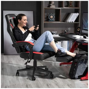 Cadeira de jogos grande e alta para adulto O design é diferente de outras cadeiras de e sports porque possui um assento maior, perfeito para adultos. Ele pode suportar até 181 kg. O encosto alto ergonômico que abraça o corpo fornece suporte lombar que se adapta naturalmente aos ombros, cabeça e pescoço. Cadeira de videogame ergonômica confortável Usando couro PU de alta qualidade, macio, confortável e amigável para a pele. Espuma de modelagem de alta densidade, estrutura de aço grossa, mais estável. O apoio de braço desta cadeira de videogame é diferente das outras porque é mais ergonômico, mais macio e mais relaxante. Cadeira de computador de segurança e conforto Elevador a gás classe 3, durável, confiável e suporta até 181 kg. Alta capacidade de carga de base de 5 estrelas. Rodízios de borracha, rolando silenciosamente e testados por 1000 milhas rolando. Esta é uma cadeira gamer para adolescentes adultos e crianças. Cadeiras de jogos ajustáveis multifuncionais Esta cadeira de computador possui um recurso de altura de assento ajustável que permite abaixar ou levantar seu assento entre 33 a . Encosto ajustável de 90 a 155 graus. O suporte lombar de massagem pode relaxar sua lombar. Você pode sentar se quando você joga computador. Você também pode usá lo como uma cadeira PS4 ou cadeira de escritório Marca: Não Informado
