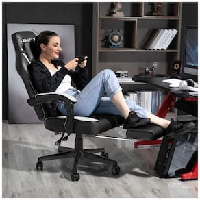 Cadeira de jogos grande e alta para adulto O design é diferente de outras cadeiras de e sports porque possui um assento maior, perfeito para adultos. Ele pode suportar até 181 kg. O encosto alto ergonômico que abraça o corpo fornece suporte lombar que se adapta naturalmente aos ombros, cabeça e pescoço. Cadeira de videogame ergonômica confortável Usando couro PU de alta qualidade, macio, confortável e amigável para a pele. Espuma de modelagem de alta densidade, estrutura de aço grossa, mais estável. O apoio de braço desta cadeira de videogame é diferente das outras porque é mais ergonômico, mais macio e mais relaxante. Cadeira de computador de segurança e conforto Elevador a gás classe 3, durável, confiável e suporta até 181 kg. Alta capacidade de carga de base de 5 estrelas. Rodízios de borracha, rolando silenciosamente e testados por 1000 milhas rolando. Esta é uma cadeira gamer para adolescentes adultos e crianças. Cadeiras de jogos ajustáveis multifuncionais Esta cadeira de computador possui um recurso de altura de assento ajustável que permite abaixar ou levantar seu assento entre 33 a . Encosto ajustável de 90 155 graus. Você pode sentar se quando você joga computador. Você também pode usá lo como uma cadeira PS4 ou cadeira de escritório Marca: Não Informado