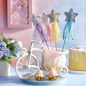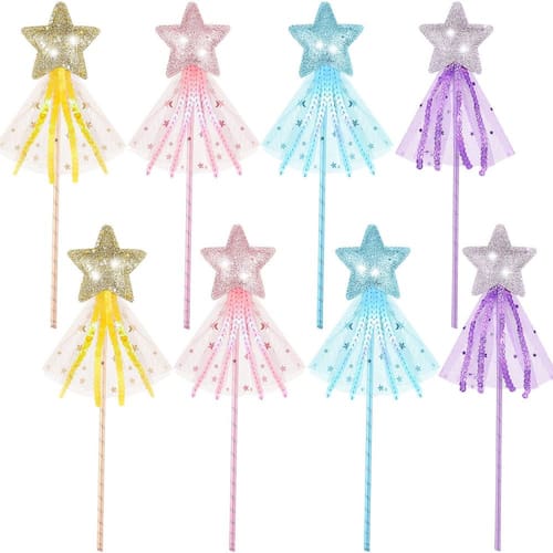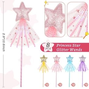 Características: Presente ideal: a varinha de glitter de fada é uma escolha sábia como presente de aniversário, e você pode enviá-la para sua família que gosta de princesas, que pode facilmente receber seu amor e boas-vindas, e trazer-lhes uma festa de aniversário feliz e completa. Suprimentos para festas de princesas: as varinhas de fadas da princesa ajudam seus filhos a entrar em um mundo mágico, feito com detalhes intrincados e que farão com que eles aproveitem horas de magia e finjam brincar na festa das fadas. Especificações: Material: couro Cor: rosa, roxo, dourado, azul Tamanho: 11,8 x 2,75 polegadas O pacote inclui: 8 varinhas de glitter Fairy Notas: Medição manual. Considere pequenos erros de tamanho. A cor pode ter uma pequena diferença devido às diferentes exibições na tela. - A embalagem inclui: você receberá 8 peças de varinhas de glitter de fada com 4 cores rosa, roxo, dourado, azul, e cada cor tem 2 peças, que são lindas e requintadas, e você pode combiná-las com outros acessórios de princesa para realizar seu sonho de princesa - Fairy star angel: varinhas de glitter princesa com estrelas brilhantes na parte superior e decoradas com cordas trançadas e gaze, que mostram efeitos de glitter e fazer você parecer brilhante e fada — Material de qualidade: os bastões Fairy Star Angel Wands são feitos de couro, que são seguros, inodoros e resistentes para que você possa usá-las por muito tempo, que são uma adição maravilhosa para sua festa temática e proporcionam uma experiência mágica e maravilhosa - Adequada para muitas pessoas: a varinha de princesa fada mede 11,8 x 2,75 polegadas, adequada para pessoas de diferentes idades, fácil de segurar e transportar onde você quiser e não causará nenhum fardo ou problema para você - Uso múltiplo: as varinhas princesa fada star angel são adequadas para o Natal, aniversário, casamento, lembrancinhas de cosplay, festas de cosplay, casamentos, festas temáticas congeladas, festas temáticas de princesas, shows e outras atividades, que são acessórios necessários para sua fantasia de princesa