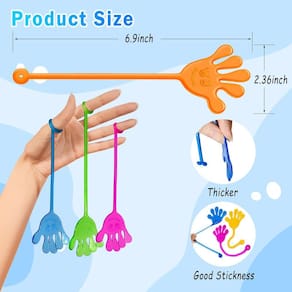 -?Suprimentos de piñata para festas de aniversário infantis?Pacote de brinquedos elásticos e pegajosos para mãos, tamanho 6,9* 2,36 polegadas, elásticos e viscosos. As crianças vão adorar jogá-las e jogá-las no teto, nas paredes, nas janelas, nas mesas e em praticamente qualquer superfície, trazendo mais diversão durante lembrancinhas de verão, lembrancinhas de aniversário ou enchimentos de ovos de páscoa e sacolas de presente de dia dos namorados para escolas de carnaval. Ótimo para artigos azuis para festas de aniversário, lembrancinhas para festas infantis, sacolas de guloseimas, lembrancinhas para festas infantis e lembrancinhas para adolescentes para meninas.