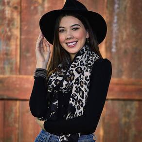 Cachecol feminino rosa com estampa de leopardo- Tipo de tecelagem: tecido