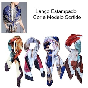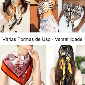Lenço Quadrado Grande Cetim Seda Multiuso Echarpe Cropped Bandana: Kit 2 Estampados.