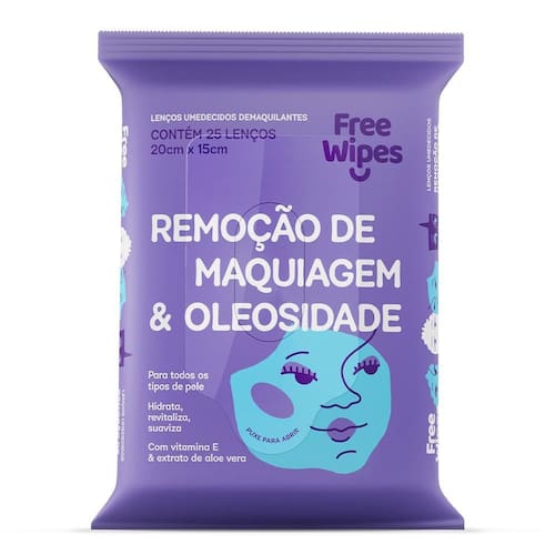 Os lenços umedecidos DEMAQUILANTES Free Wipes ajudam na remoção da maquiagem e na redução da oleosidade do rosto.