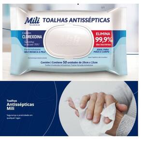 Toalha Umedecida Mili Antisséptica 50 unidades