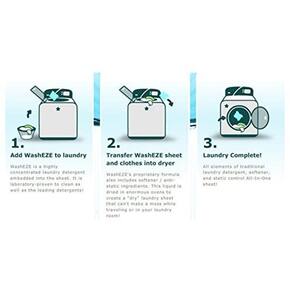 - Chega de garrafas pesadas - O lençol de detergente para roupa WasheEZE é leve e fácil de armazenar.