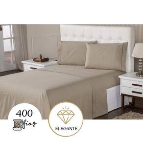 Lençol 4 Peças Casal 400 Fios Toque Suave Ponto Palito Casa Dona - Marfim