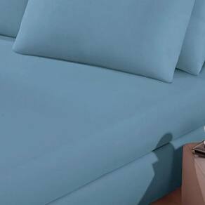 Lençol Basic Casal 100% Algodão Malha Penteada com Elástico Liso Azul Jeans