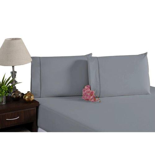LENÇOL CASAL 3 Pç. 100% ALGODÃO PERCAL 200 FIOS PONTO PALITO - Cinza