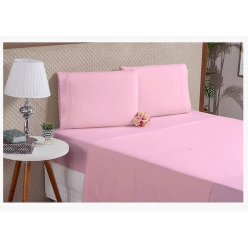 Lençol casal 4 peças algodão rosa hotel motel pousada Jogo de lençol casal 4 peças