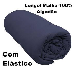 Lençol Com Elástico Queen Portallar Malha 100% Algodão Liso Linha Casa Azul Profundo