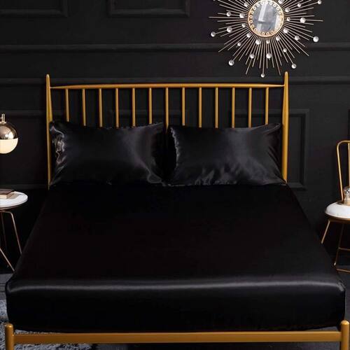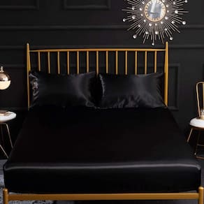 Lençol Com Elástico Solteiro mais uma fronha Cetim Preto