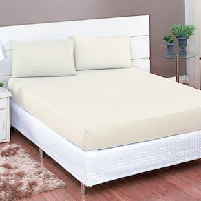 Lençol creme casal padrao com elastico mais fronhas percal Kit lençol casal padrao com fronha