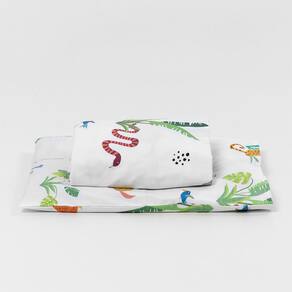 O kit contém: • 1 Lençol de Berço com Elástico - Selva • 1 Fronha - Selva