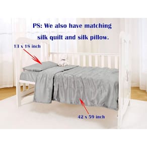 Comentários de outros clientes sobre lençóis de berço de seda: "Comprei um lençol de berço de seda para meu filho de 9 meses que esfrega o rosto em seus lençóis quando está dormindo. Todos os outros lençóis que experimentei eram muito ásperos em sua pele delicada. Desde dormir neste lençol de seda, seu rosto ficou totalmente limpo. É altamente recomendável este lençol se o seu pequeno estiver lutando com o atrito. "Eu comprei isso depois que o cabelo do meu bebê caiu e notei fios de cabelo dele em seus lençóis. Depois de mudar para seda, seu cabelo imediatamente começou a crescer! Eu gostaria de começar com seda desde o início e então talvez ela não tivesse caído em primeiro lugar... Já tenho dito às pessoas para usarem seda!! " "Minha filha esfrega muito a cabeça à noite e fica super morto/frizz nas costas. Comprei estes para deixar o cabelo mais suave e eu adoro!!! " Ajuda a evitar rachaduras ou pele seca quando devidamente lavado e cuidado. Macio e ótimo para a pele delicada e macia do nosso homenzinho" Comprado para neta de um ano que tem eczema grave. As luvas de seda para arranhões evitam irritação por arranhões. Então eu me perguntei como colocar seda ao lado do rosto durante o sono. Gostaria de ter pensado em lençóis de seda antes. Ela não acorda mais com bochechas vermelhas rachadas ao esfregar durante cochilos e dormir à noite. Caro, mas vale cada centavo." - Serve em colchões de berço padrão (71 cm x 132 cm) + bolsos profundos de 20 cm - Material 100% seda amoreira, sensação super macia e sedosa que seu bebê vai adorar - Facilite a cama; o elástico mantém o lençol esticado e no lugar - Este lençol de seda com elástico é perfeito para bebês com pele e cabelo sensíveis - Fácil de tirar e lavável na máquina. Lavar à máquina em ciclo delicado em água fria com detergente que não irrita a seda e seque ao ar.