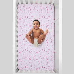- O adorável lençol de berço é totalmente elástico para um ajuste seguro e confortável