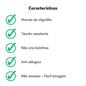 Características do Produto: Tratamento antipilling Tingimento idantren Maciez do algodão Tecido resistente Não cria bolinhas Anti alérgico Não amassa - Fácil lavagem - Prático