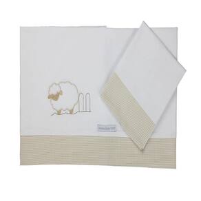 Lençol De Mini Berço Malha 03 Peças Ovelha Bege