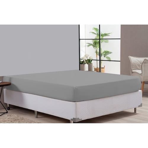 Lençol percal 180 fios cinza 80% algodão casal padrão