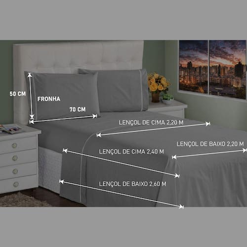 - Lençol de Cima: 2,3m x 2,2m