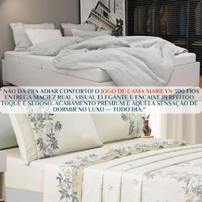 Sabe aquele lençol que você deita e sente o corpo inteiro relaxar É esse. O Lençol Marilyn 300 Fios tem aquele toque macio e acolhedor que transforma qualquer noite comum em uma experiência digna de hotel 5 estrelas. Ideal pra quem valoriza noites bem dormidas, carinho nos detalhes e aquele clima gostoso de casa bem cuidada.
