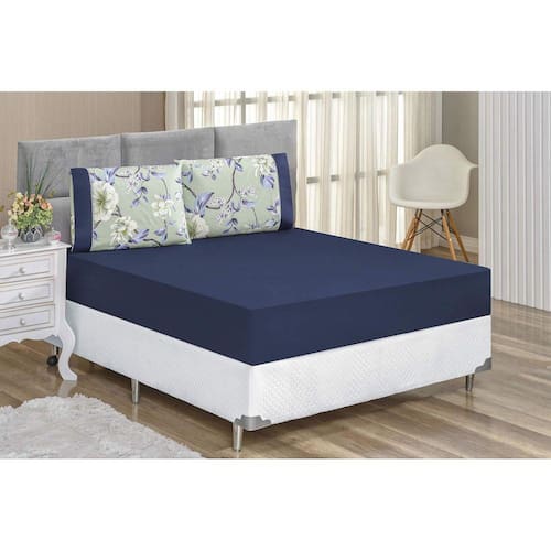 Lençol Solteiro Micropercal 200 Fios Naturale 02 peças Cor: Verde com Marinho - Flower TECIDO 200 FIOS MICROPERCAL 01 lençol de baixo c/elástico 2,50m x 1,50m p/colchão de 1,88m x 88cm x 30cm01 fronha 70cm x 50cm Composição Tecido 100% poliéster