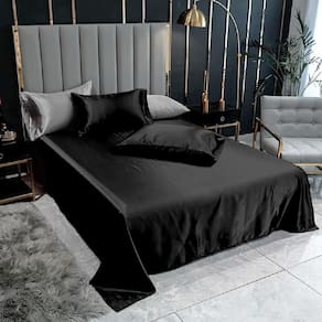 Lençol Superior Casal Padrão Com 2 Fronhas Cetim Seda Preto Deixe seu quarto mais elegante com Lençol em Cetim Charmousse, tenha noites aconchegantes e com um toque de suavidade em sua pele. Cabelos e Pele Perfeitos