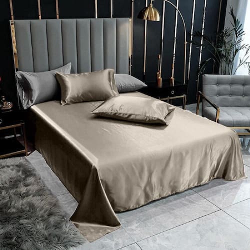 Lençol Superior Casal Queen Com 2 Fronhas Cetim Seda Bege