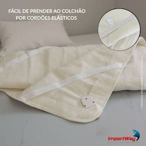 - Fácil de prender ao colchão por cordões elásticos.